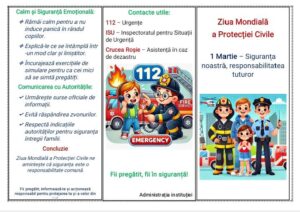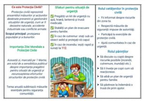 În acest context, Administrația Liceului Teoretic „Mihail Sadoveanu” a informat elevii, cadrele didactice și părinții despre semnificația acestei zile și despre rolul fiecăruia în asigurarea siguranței comunității școlare. Au fost furnizate informații relevante despre măsurile de prevenire, comportamentul adecvat în situații de urgență și importanța protecției civile.